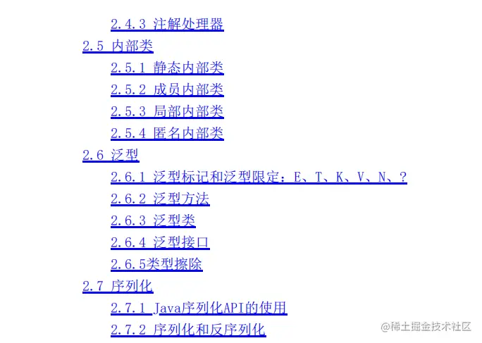 具体包含Java的集合、异常分类及处理、反射机制、注解、内部类、泛型、序列化这几部分内容。