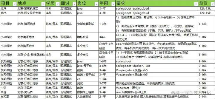 分享一下看到的面试招聘情况: