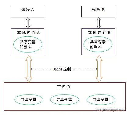 线程之间的共享变量存储在主内存中(Main Memory)中,每个线程都一个都有一个私有的本地内存(Local Memory),本地内存中存储了该线程以读/写共享变量的副本。