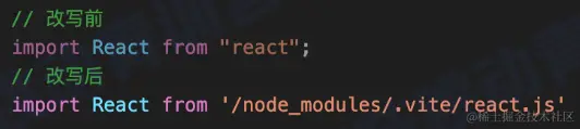 - 改写 import 语句,指定依赖为预构建产物路径