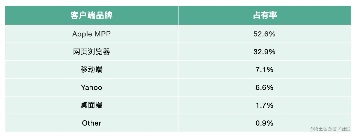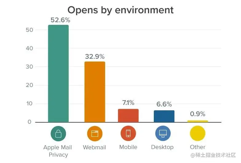 而收件人阅读邮件时最常见的环境,使用网页浏览器的收件人还是占了较大的比例(苹果系统因为Apple MPP隐私问题无法跟踪到具体的环境)。