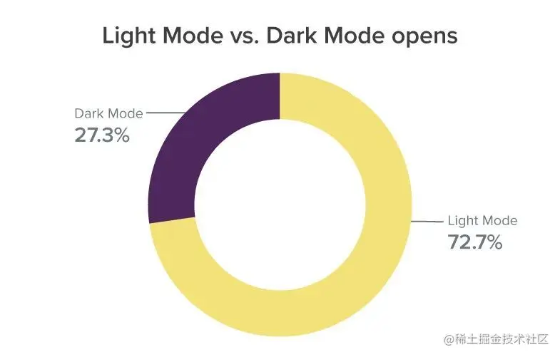 - Dark Mode 海外市场的收件人使用 Dark Mode 的比例还是挺多的,根据 Litmus 的统计,电子邮件的打开中,有 27.3% 的比例是在 Dark Mode 下发生的。所以,在 Dark Mode 下,电子邮件是否看起来依然很好,这个是需要关注的。