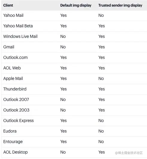 使用内联 CSS 一些电子邮件服务商(Gmail、Yahoo等)将外部样式表视为潜在的安全威胁并会阻止它,而有些服务商会替换成自己系统中默认的标签和样式,所以避免使用外部样式表,使用style属性编写内联的CSS。