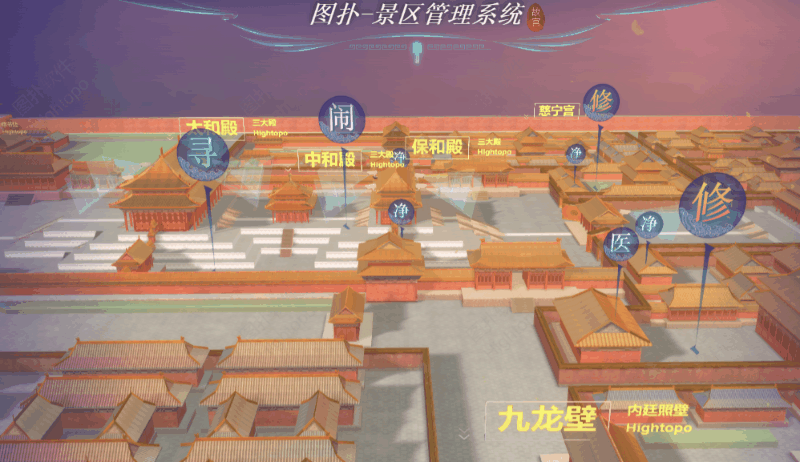 运用图扑软件自主研发引擎 HT for Web,实现可交互式的 Web 故宫三维场景,满足了景区管理现代化的、高性能的、跨平台(桌面 Mouse/移动 Touch/虚拟现实 VR)的数据可视化需求,为景区的数字化转型助力。运用 WebGL 技术创建具有复杂 3D 结构的景区画面,在浏览器上也能轻松加载。
