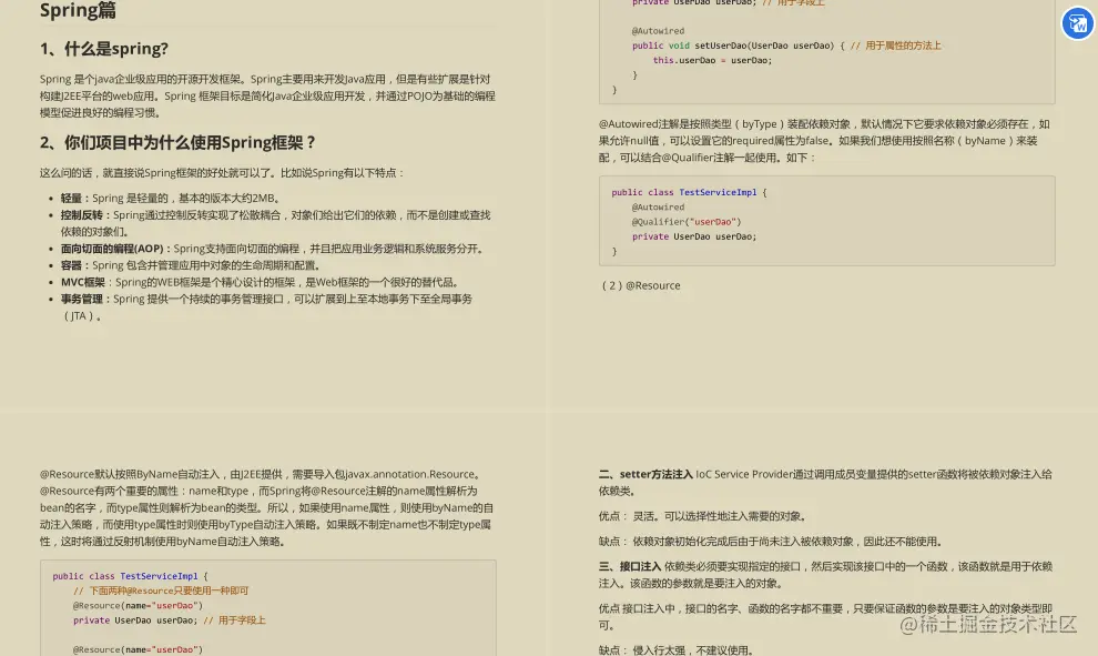 博主已将以下这些面试题整理成了一个Java面试手册,是PDF版的+XXX_WWW666666内容涵盖了:Java基础、JVM、多线程、spring全家桶、MyBatis、数据库、微服务、Dubbo、Nginx、MQ、Linux、Zookeeper等技术栈。