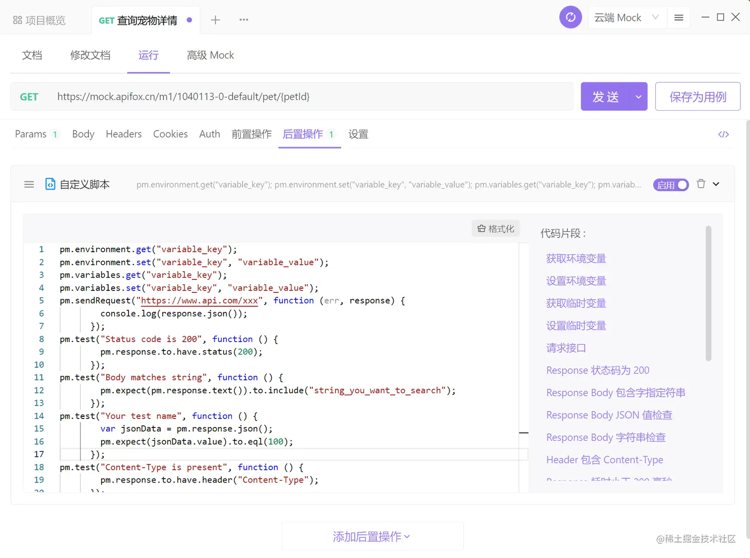 它把Postman里需要写脚本的功能都封装成了可视化界面,直接通过填写参数的方式去调试。