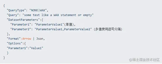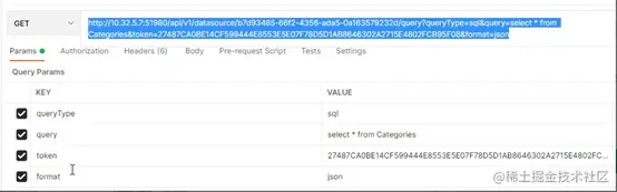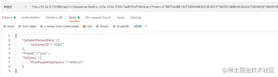 当我们需要调用某个数据集,可以通过该 API 以 POST 或 GET 两种方式完成操作。(示例 URL 为http://10.32.5.7:51980/api/v1... *from Categories&token=27487CA0BE14CF599444E8553E5E07F78D5D1AB8646302A2715E4802FCB95F08&format=json;调用数据集的 URL 格式为 POST/GET api/v1/dataset/{document id}/query。)