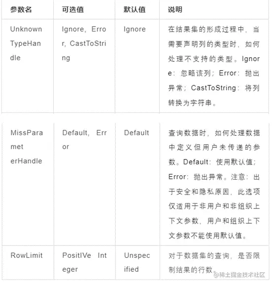 option1, option2 ...为选项参数,前缀$表示数据集参数,多个值通过多次重复一个参数来表示。Option 选项参数具体信息如下: