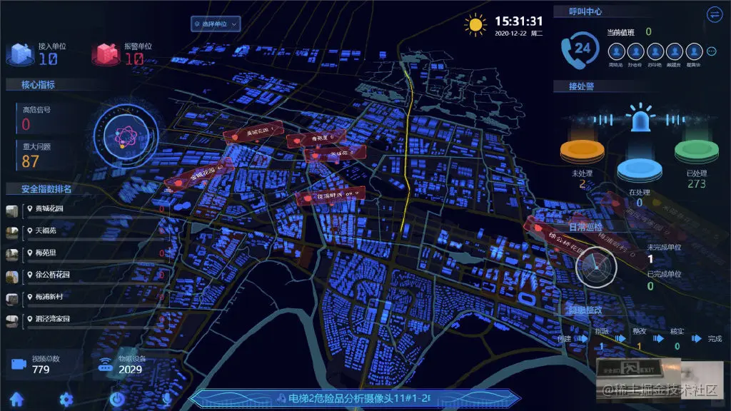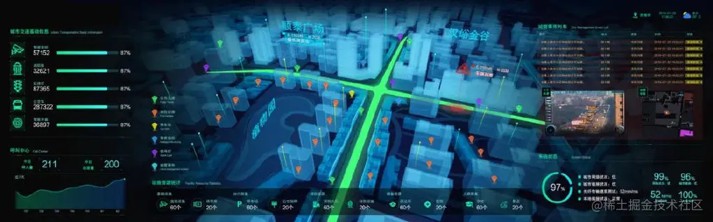 ▲ 智慧城管数字孪生Web3D大屏可视化系统