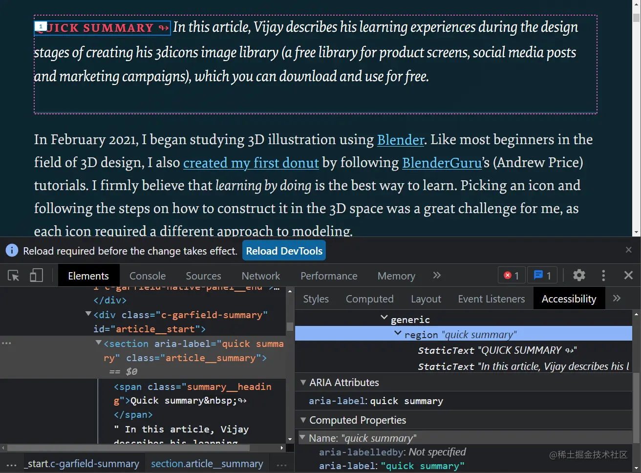 现在,屏幕阅读器用户可以使用快捷键跳转到 "快速摘要 "区域,并获得文章内容的概述,而不必首先与整篇文章互动。
