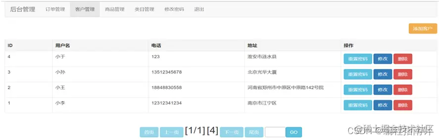 SSM手机商城系统系统管理员用户登陆系统后,可以进入客户管理菜单进行相应的管理员客户信息管理。用户管理操作界面如下图3-9、3-10所示: