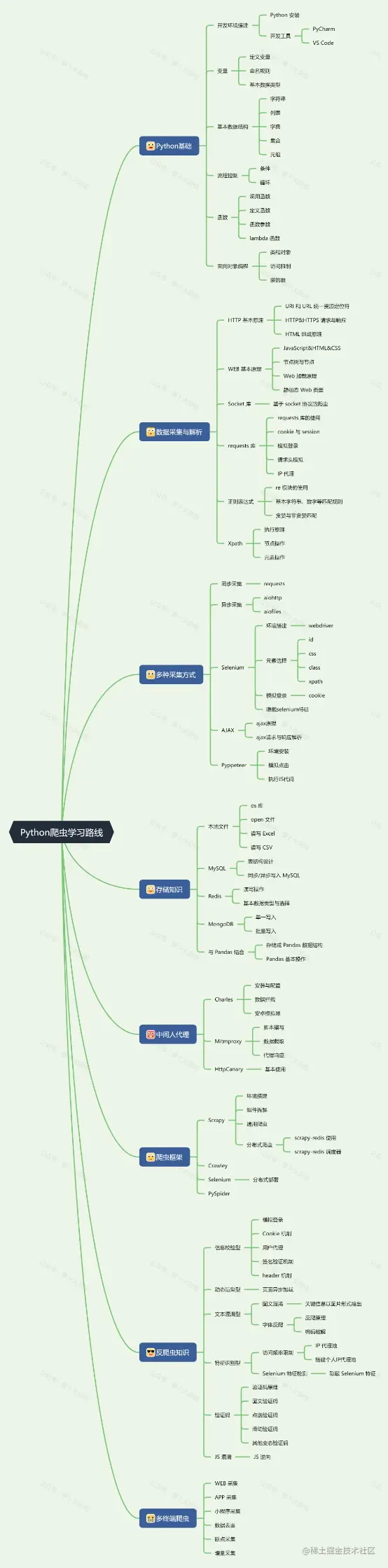 公众号后台回复【爬虫路线】可以获取学习大纲思维导图原图