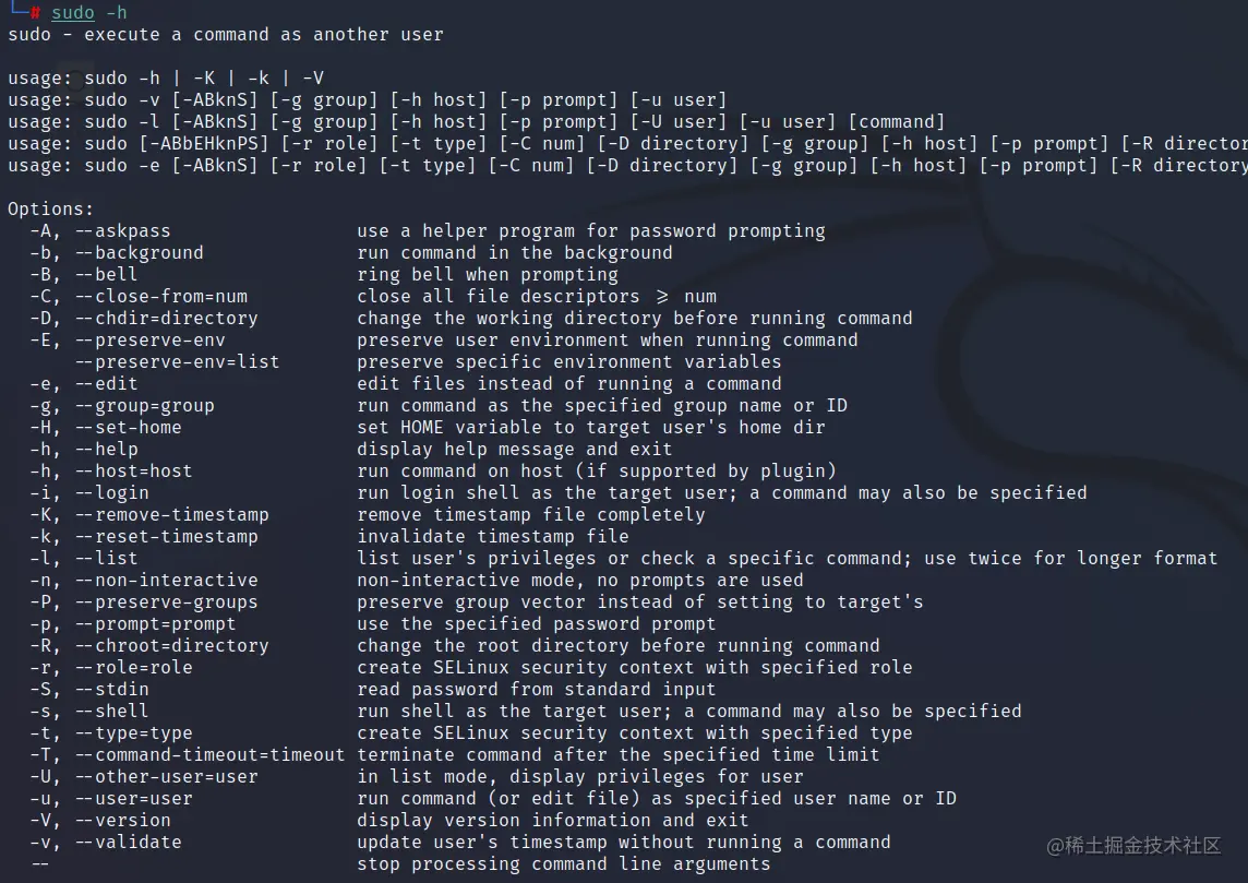 sudo 是一种权限管理机制,管理员可以授权于一些普通用户去执行一些 root 执行的操作,而不需要知道 root 的密码。严谨些说,sudo 允许一个已授权用户以超级用户或者其它用户的角色运行一个命令。当然,能做什么不能做什么都是通过安全策略来指定的。sudo 支持插件架构的安全策略,并能把输入输出写入日志。第三方可以开发并发布自己的安全策略和输入输出日志插件,并让它们无缝的和 sudo 一起工作。默认的安全策略记录在 /etc/sudoers 文件中。而安全策略可能需要用户通过密码来验证他们自己。也就是在用户执行 sudo 命令时要求用户输入自己账号的密码。如果验证失败,sudo 命令将会退出。