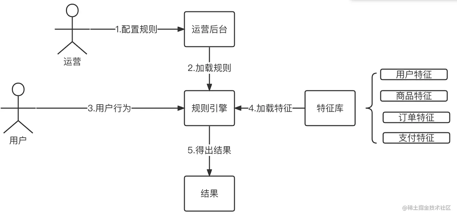 第二阶段:规则引擎阶段,通过抽象业务,开发规则配置平台,可以非常方便的运营规则,增加了规则的机动性。
