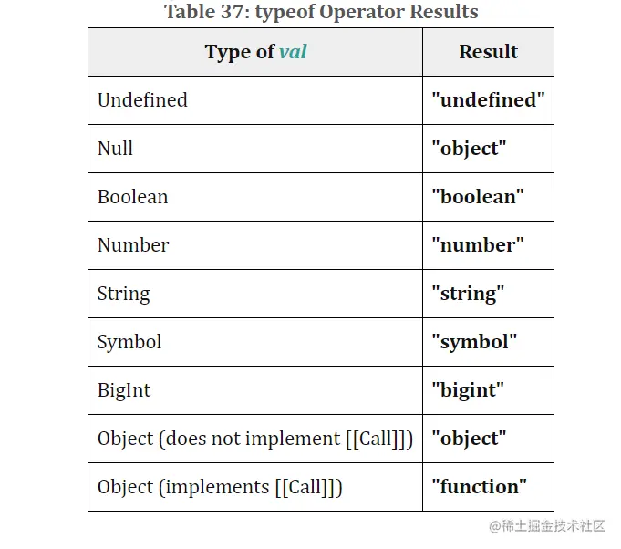 typeof的返回值如下表所示: