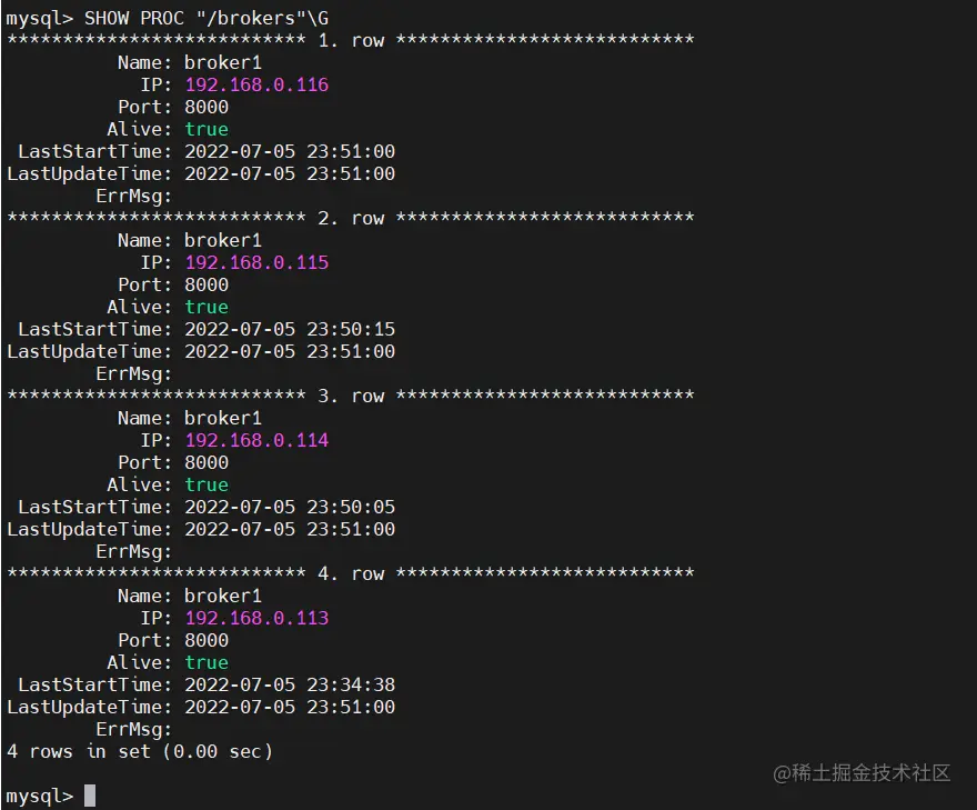 ALTER SYSTEM ADD BROKER broker1 "192.168.0.114:8000";