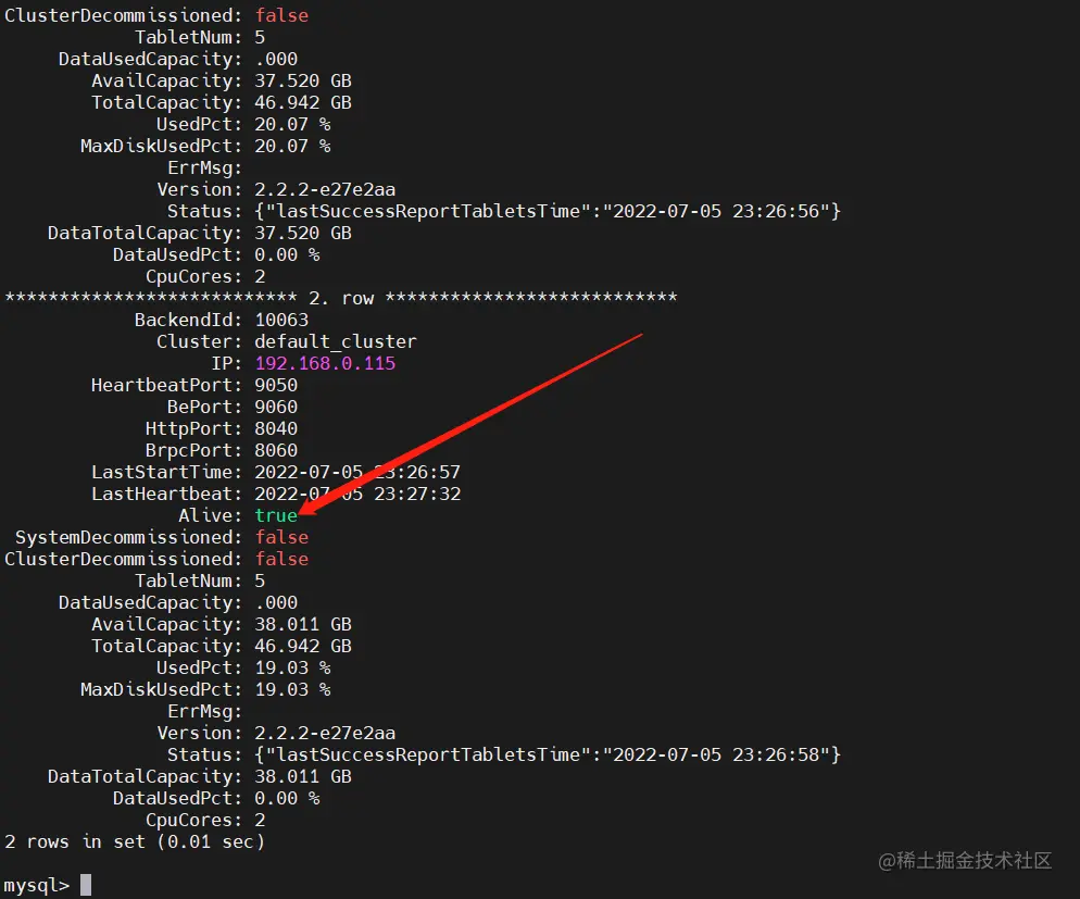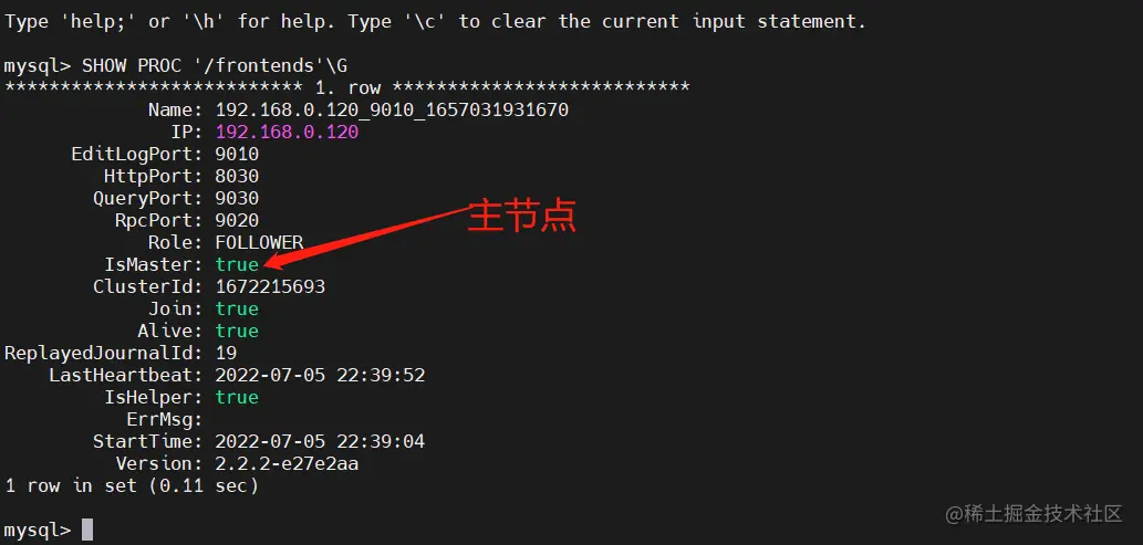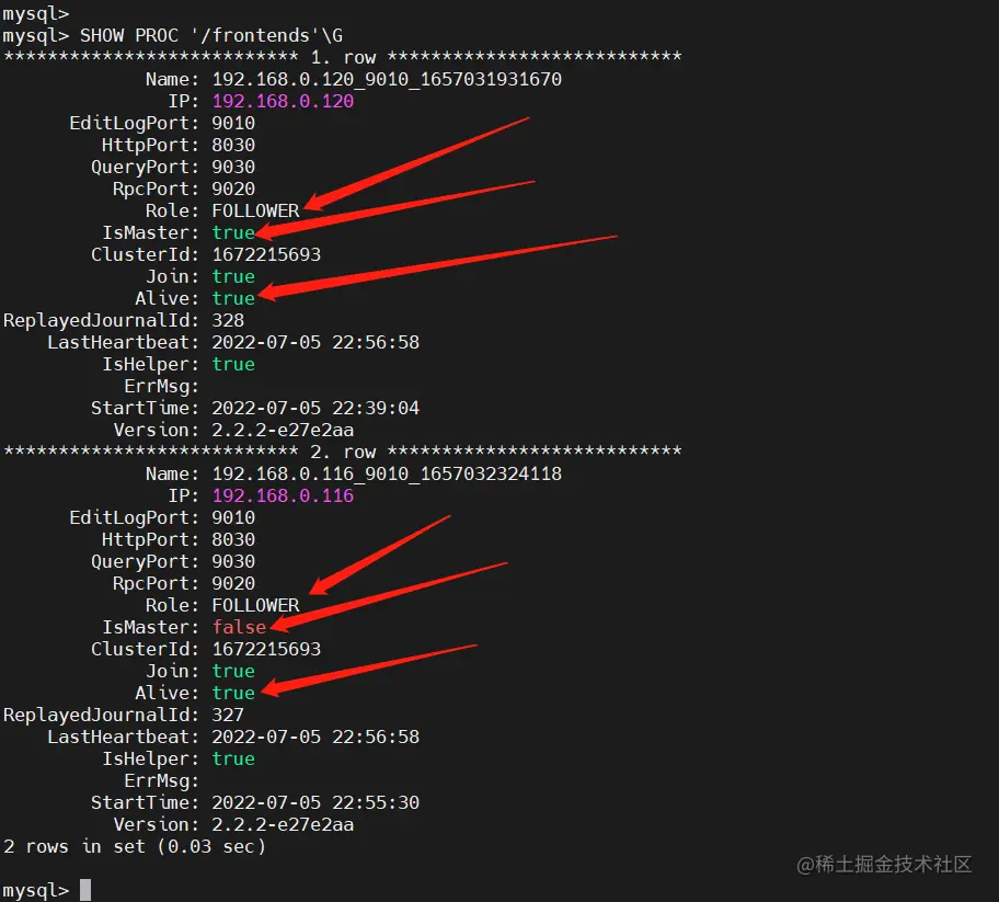 主要关注上面标注的三个指标,IsMaster:代表是否时主节点,Role:代表角色,节点类型,Alive:代表节点正常