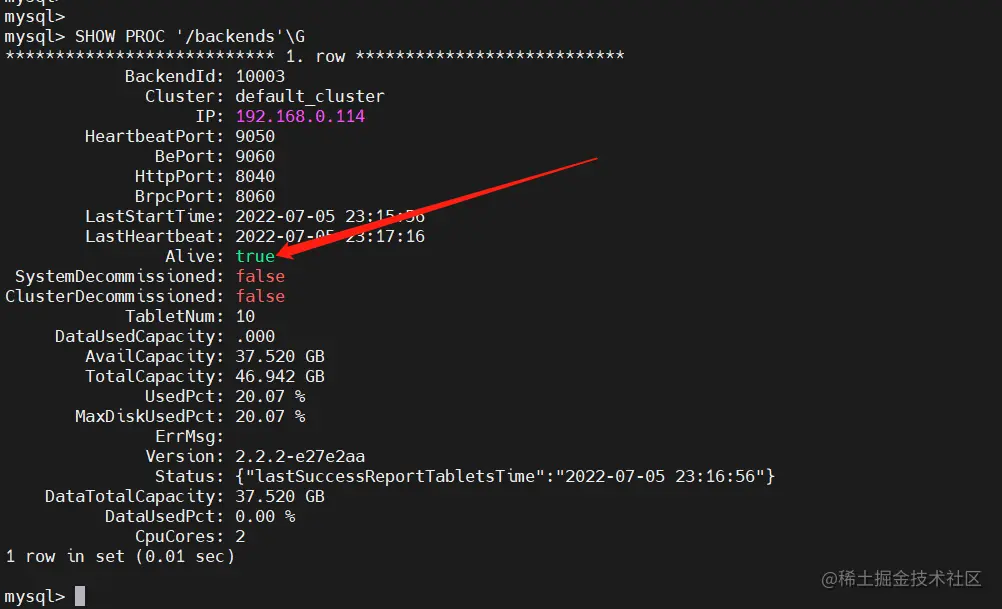 ALTER SYSTEM ADD BACKEND "192.168.0.115:9050";