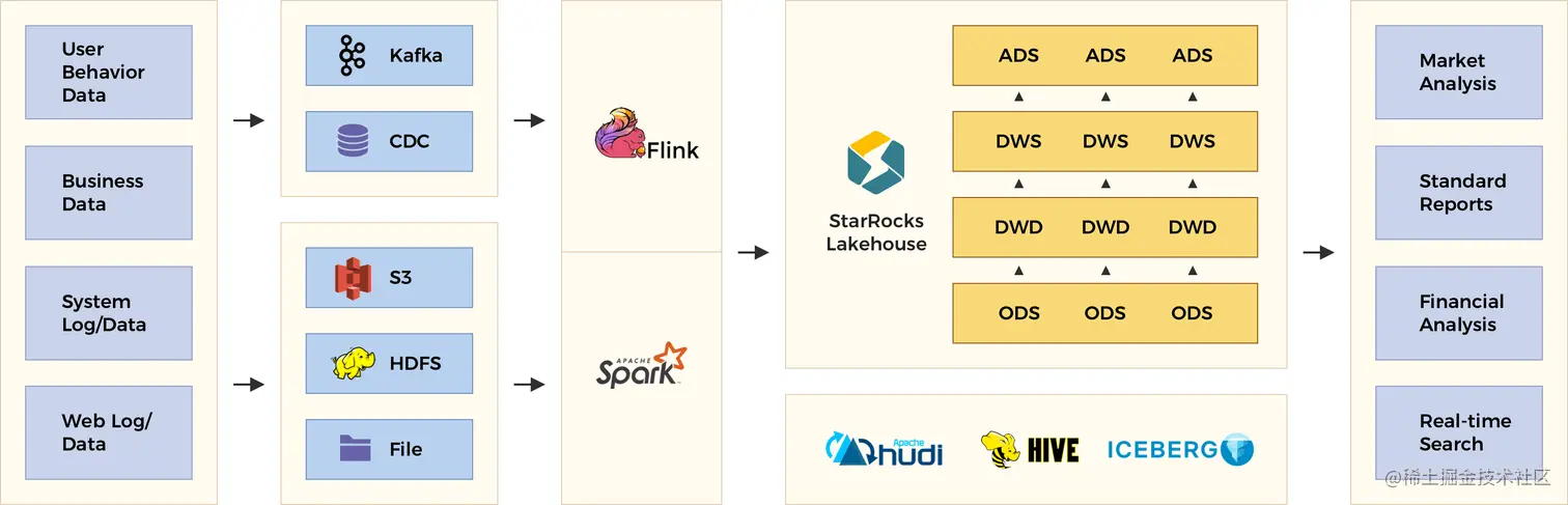 - 直接查询数据湖中的数据:StarRocks 允许直接访问来自 Apache Hive™、Apache Iceberg™ 和 Apache Hudi™ 的数据,而无需导入。