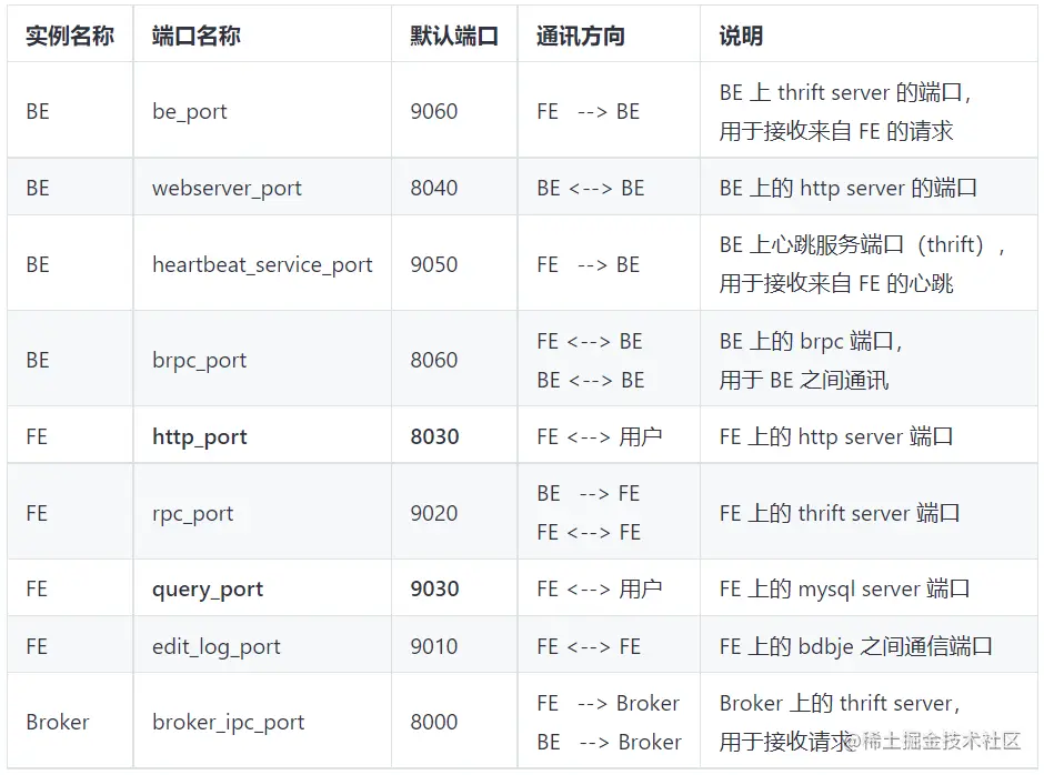 host为机器的IP,如果机器存在多个IP,需要选取priority_networks里的IP,例如priority_networks=192.168.1.0/24 可以设置使用192.168.1.x 这个子网进行通信。port为edit_log_port,默认为9010。