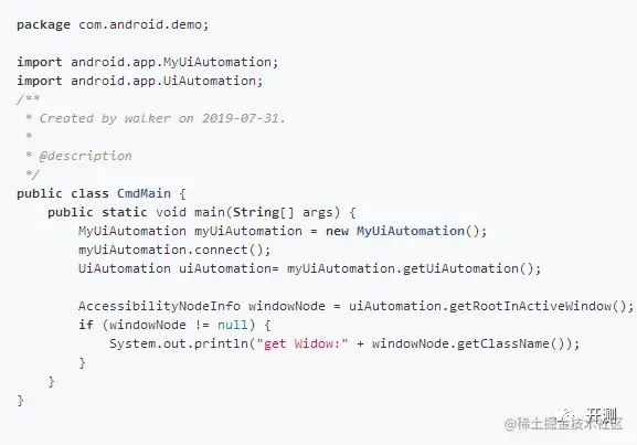 到此uiautomator进程已经获取UiAutomation对象,可以通过UiAutomation对象获取屏幕元素信息、发送按键事件、滑动屏幕、点击屏幕等。以下代码展示部分重要API,无论是Uiautomator1.0还是Uiautomator2.0最终都是通过UiAutomation对象来执行测试动作的。