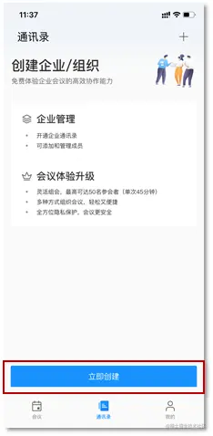 - 在“联系人”界面单击“立即创建”。