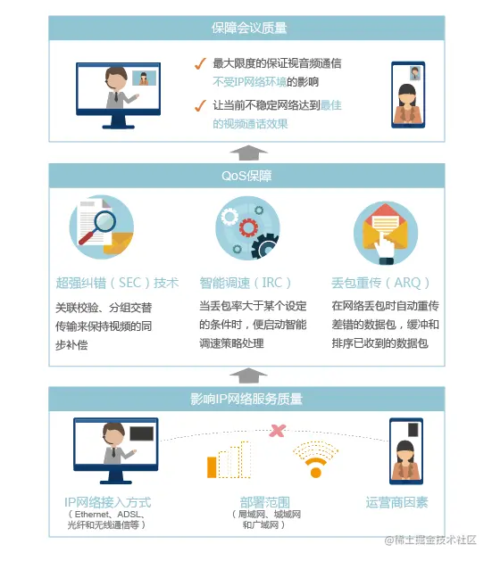 超强网络适应能力,30%视频抗丢包,80%音频抗丢包。
