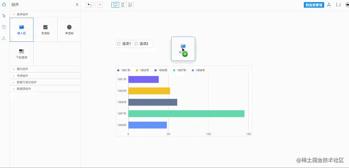 首先,把画布区域抽象为一个列表(存放组件以及布局 json树),组件就是获得拖拽组件的元数据对象插入到列表中即可