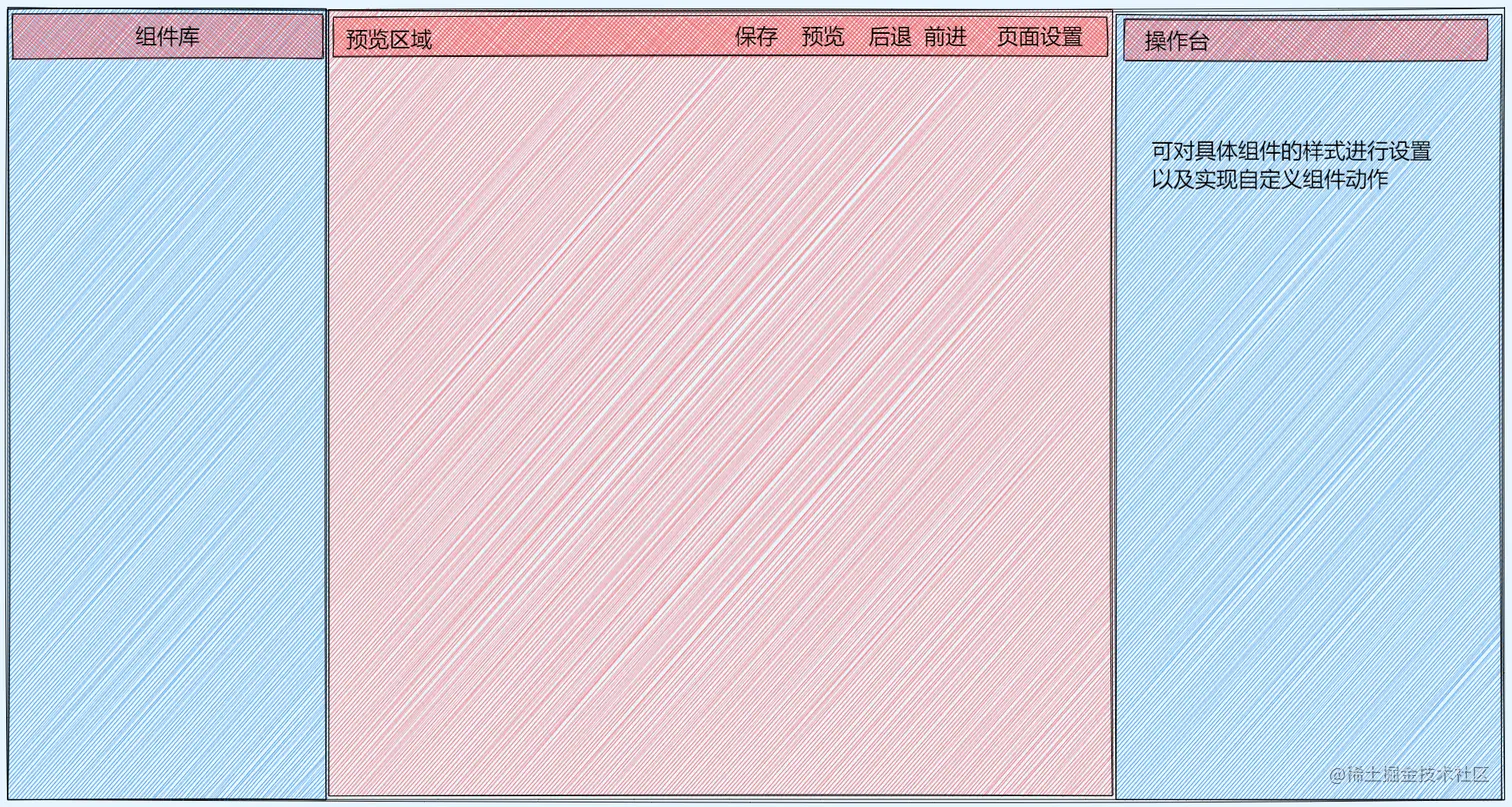 预览(画布)区域主要是承载组件和组件的拖拽,我们需要一个顶级对象,来存储全局配置信息,以及组件元数据及样式信息。