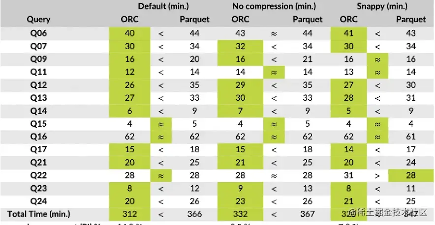 Parquet vs ORC 对比