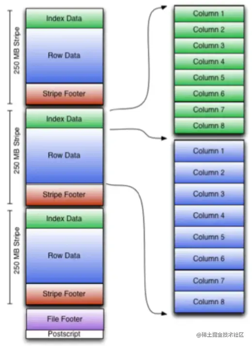 - ORC 会给包括根节点在内的中间节点都创建一个 Column