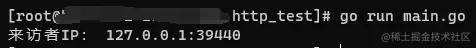 如上代码,在服务器启动后,使用curl IP:8082后可以得到IP地址,我们尝试一下。