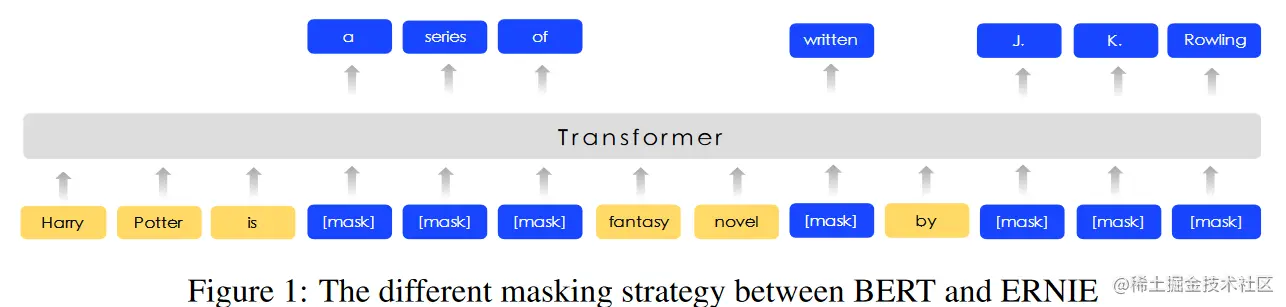 针对Bert MASK是在subword粒度进行随机掩码,已经有不少的改良方案,包括Whole word MASK通过全词掩码来更好的引入词粒度信息,以及ERINE的knowledge masking通过实体&短语掩码引入知识信息等等