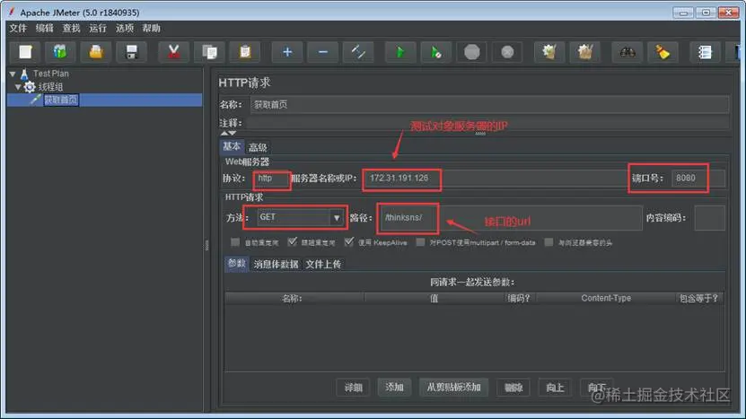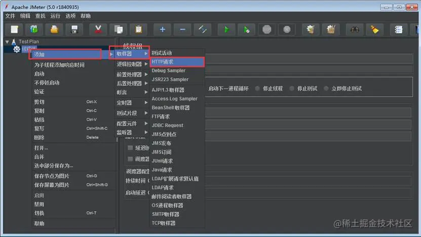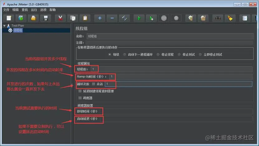 后续我们要添加的请求都是要放在线程组下的。线程组,也是进行性能测的基本组成单位。