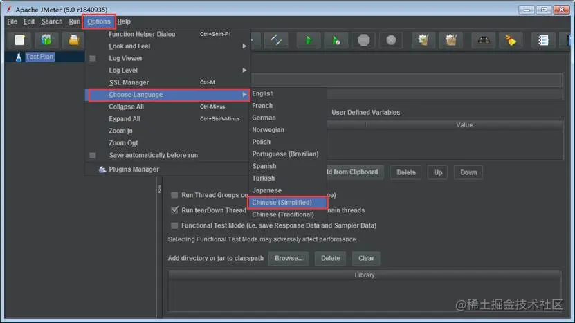 1、下载jmeter-plugins-manager-1.4.jar,然后将该文件放到..\apache-jmeter-5.0\lib\ext路径下,然后重启jmeter