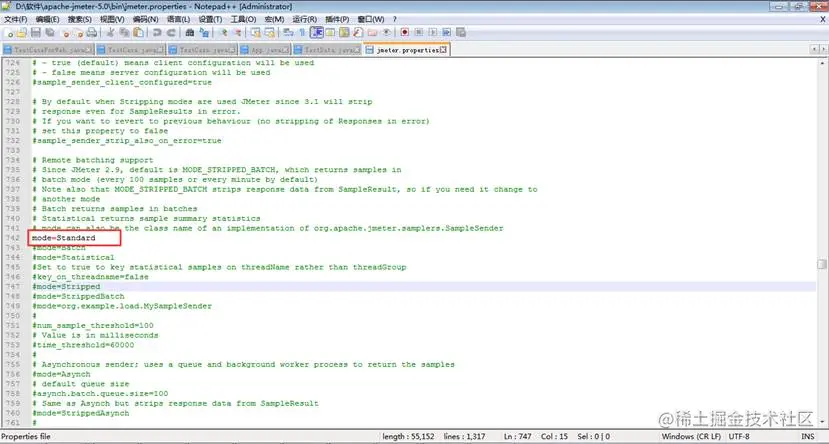 修改调度机的配置文件jmeter.properties(该文件在jmeter安装目录的bin目录下)