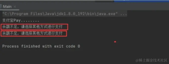 System.out.println("余额不足,请选择其他方式进行支付");