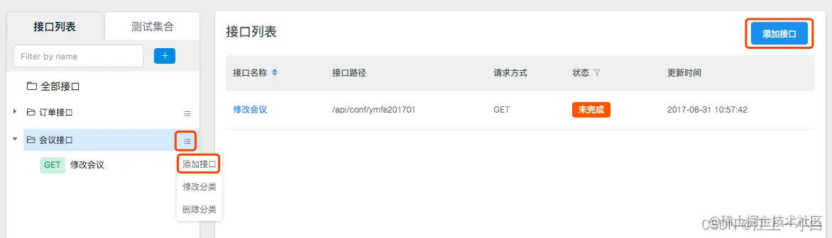 - 支持接口协同状态:未完成+已完成 + 自定义Tag(设计中、开发中、待提测、已发布)