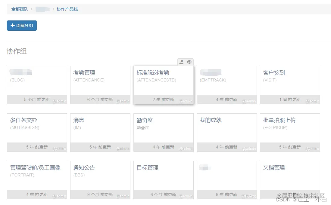 - 通过分组管理项目,分组可以进行人员管理,存在分组组长