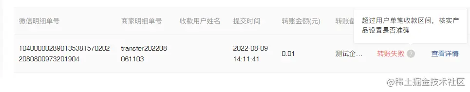代码执行转用1分钱失败,因为转账默认最低金额是1元,最低可以调至0.3元
