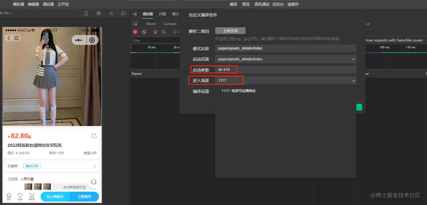 - 打开微信开发者工具点进个商品详情,