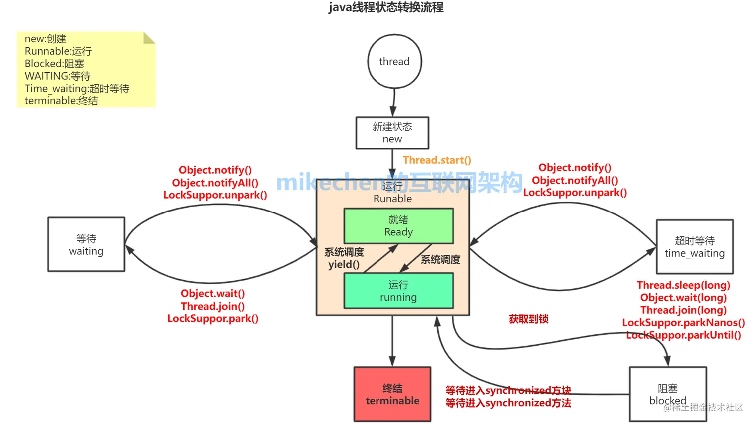 可以对照上面的线程状态流转图来看具体的方法,这样更清楚具体作用: