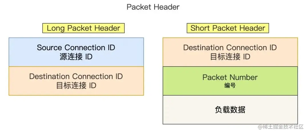 - Long Packet Header 用于首次建立连接。