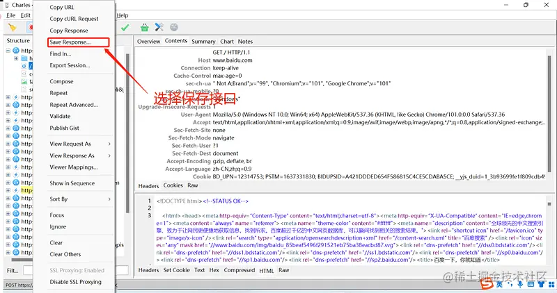 1.先保存接口返回数据,右键单击某接口->点击 SaveResponse ->文件后缀写上 .html