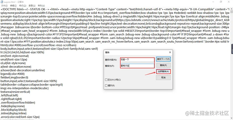 2.对本地的 html 进行修改,将“百度一下”改为“霍格沃兹”