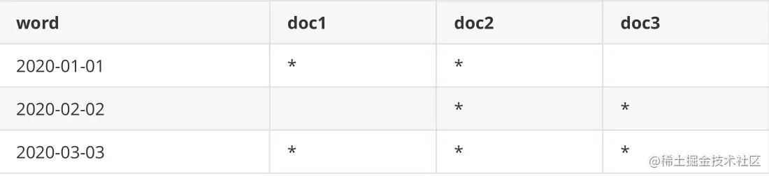 如下面这个例子,需要过滤date为2020-02-02的数据,去倒排索引中查找,发现2020-02-02对应的document list是doc2、doc3.