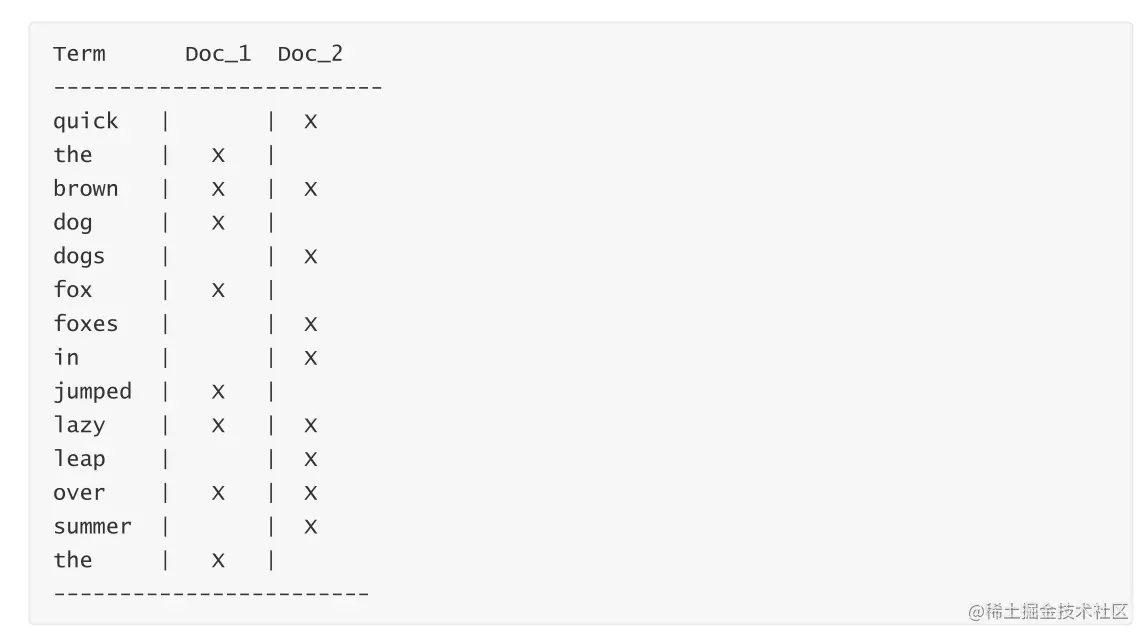 Doc Values是转置倒排索引和正排索引的关系来解决这个问题。倒排索引将词项映射到包含它们的文档,Doc Values将文档映射到它们包含的词项: