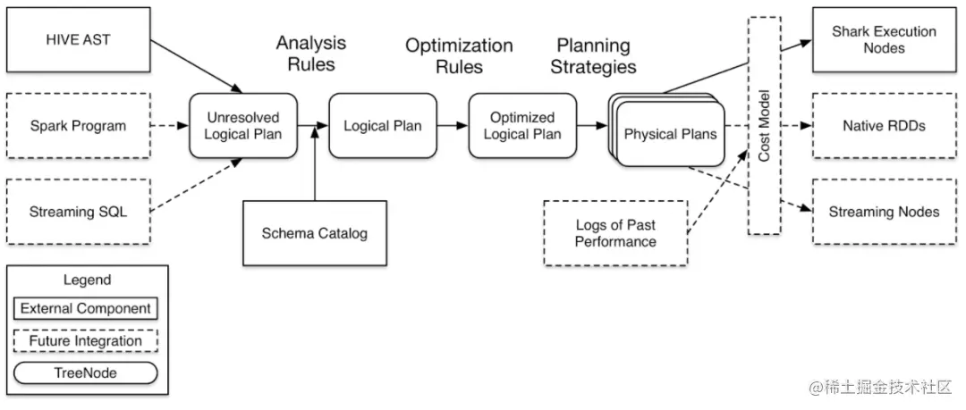 - 我们只添加了足够薄的一层,使得完全不影响 Spark SQL 的执行计划以及其他数据源的执行流程。