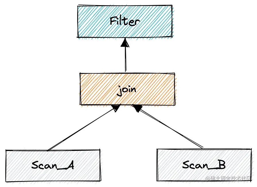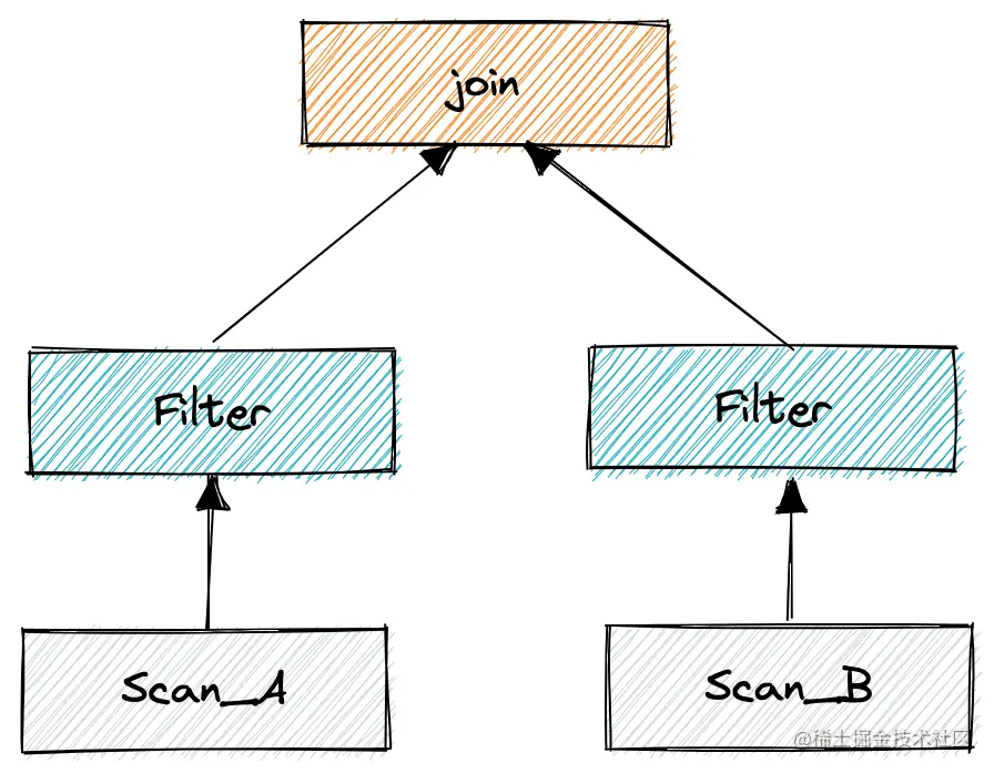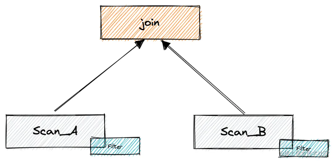 第一步:在逻辑计划下推优化后,过滤条件会被下推到更靠近数据源的位置,这样 join 所需处理的数据就会更少