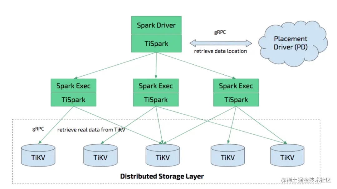 TiSpark 是 PingCAP 为解决用户复杂 OLAP 需求而推出的产品。它通过 Spark 提供的拓展机制与内置的 TiKV Client Java,在 Spark 之上直连 TiKV 进行读写,具有事务性读取、事务性写入与删除等能力。其中在事务性读取中基于 Spark Extension 实现了下推(详情可见 TiSpark 用户指南)。